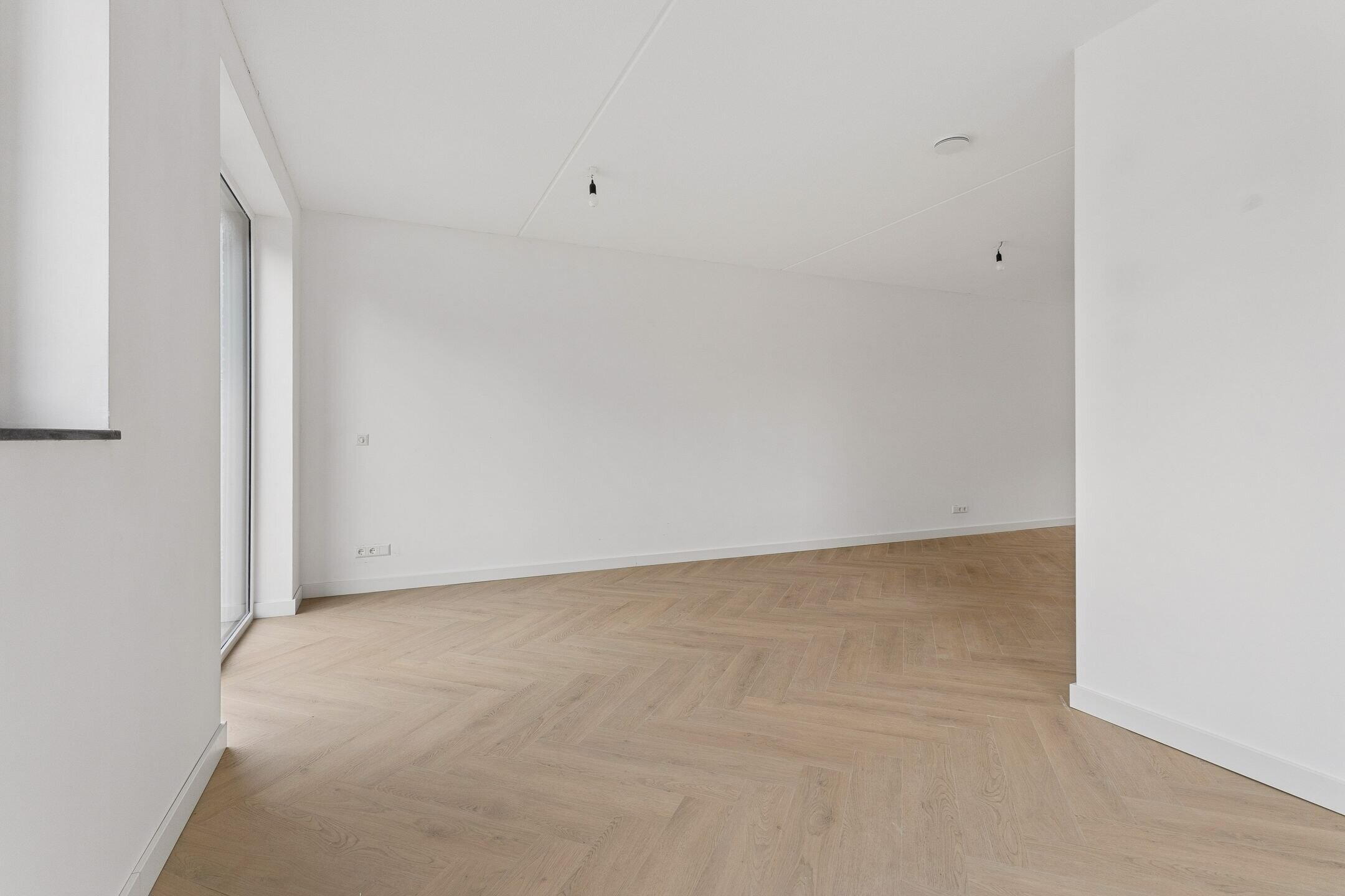 De begane grond is afgewerkt met vloerverwarming en een lichtkleurige PVC visgraatvloer, wat zorgt voor een stijlvolle, moderne en hoogwaardige uitstraling.